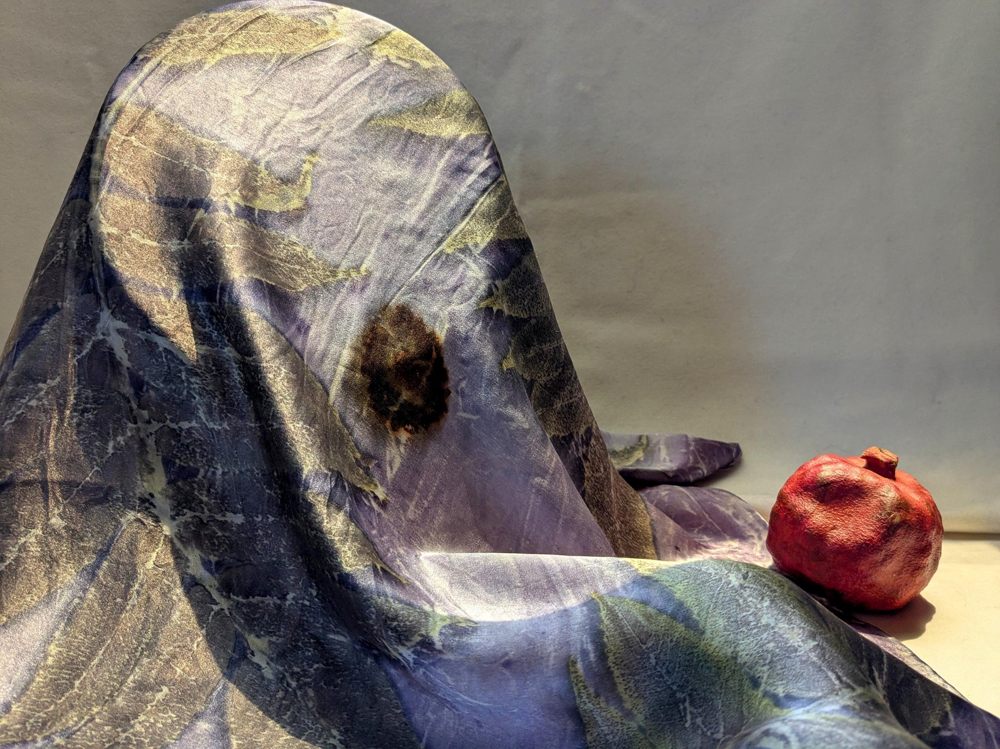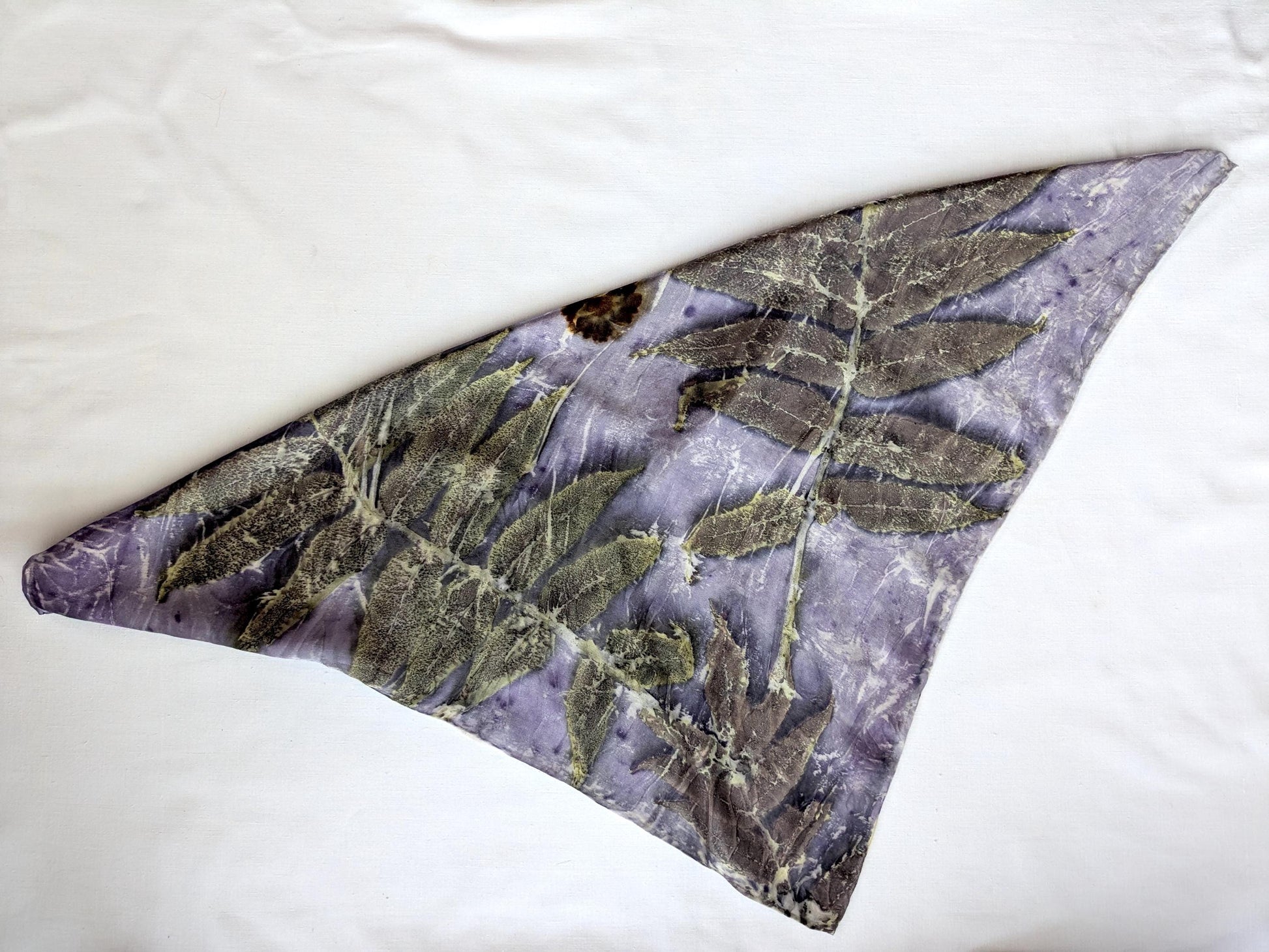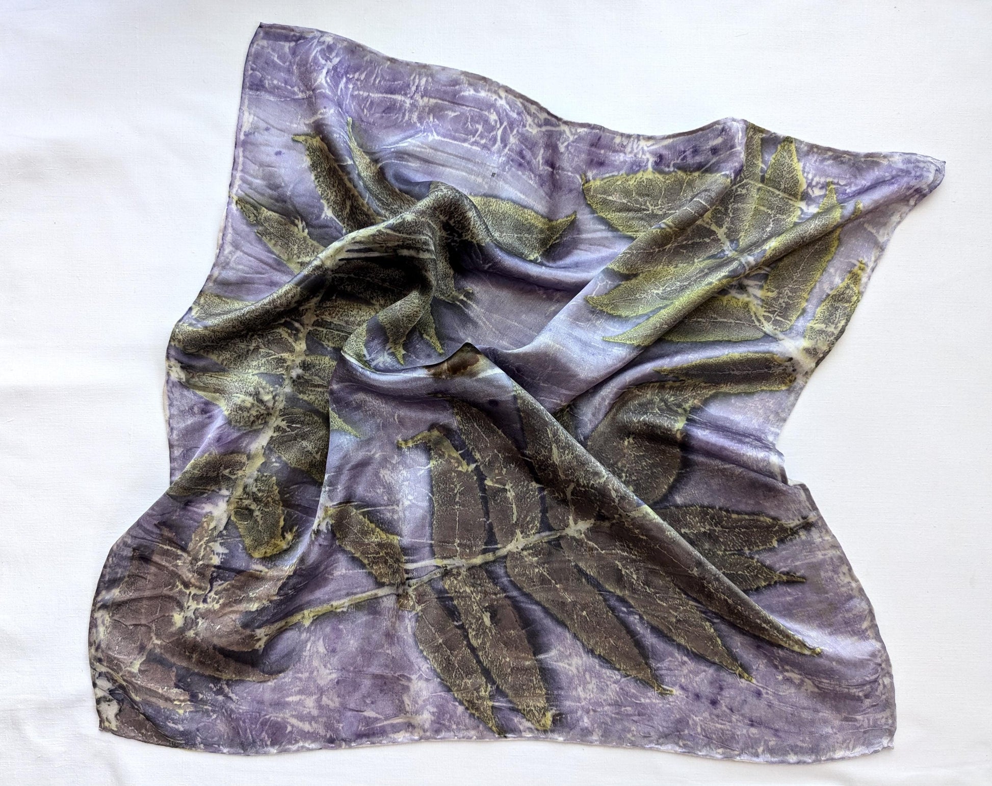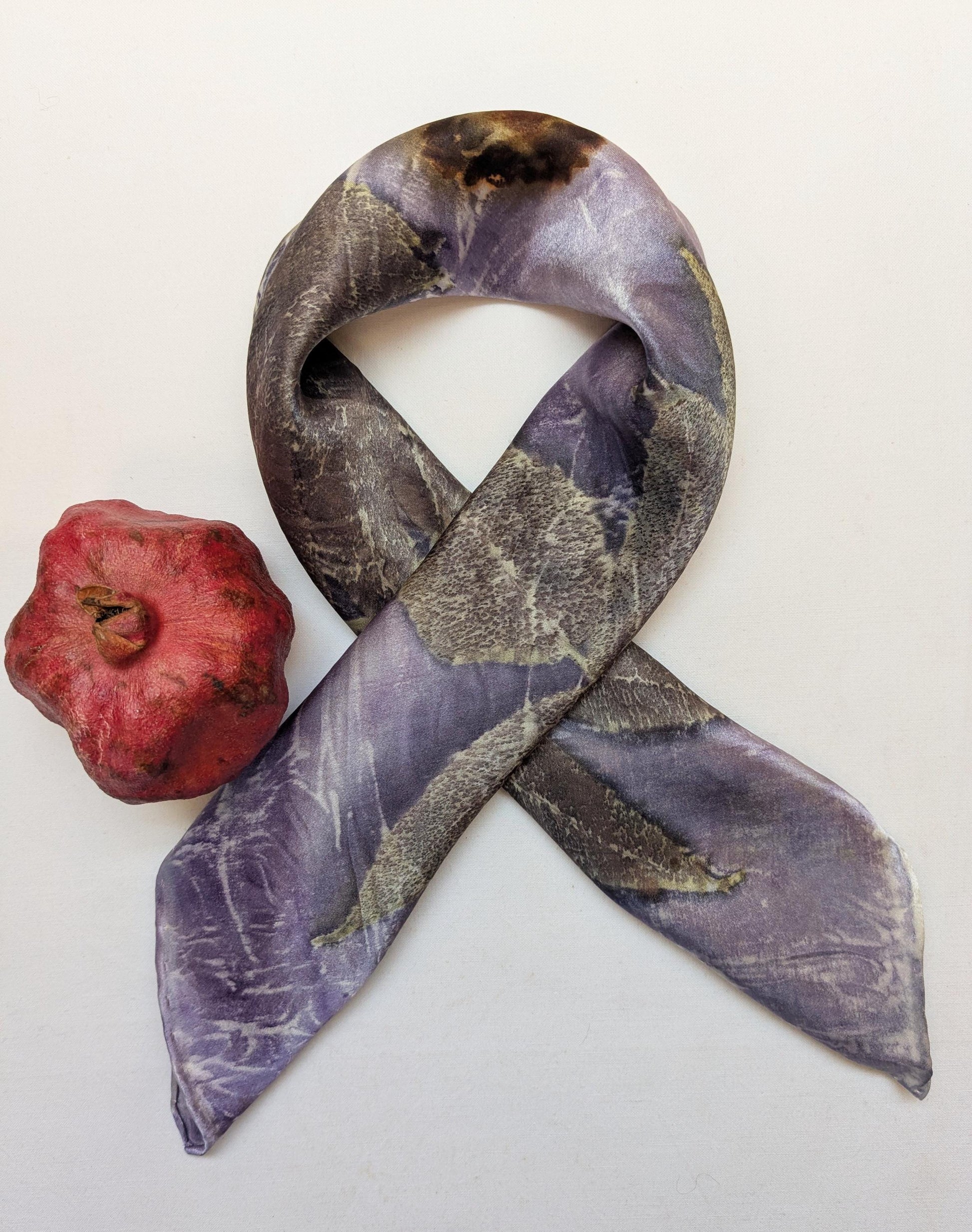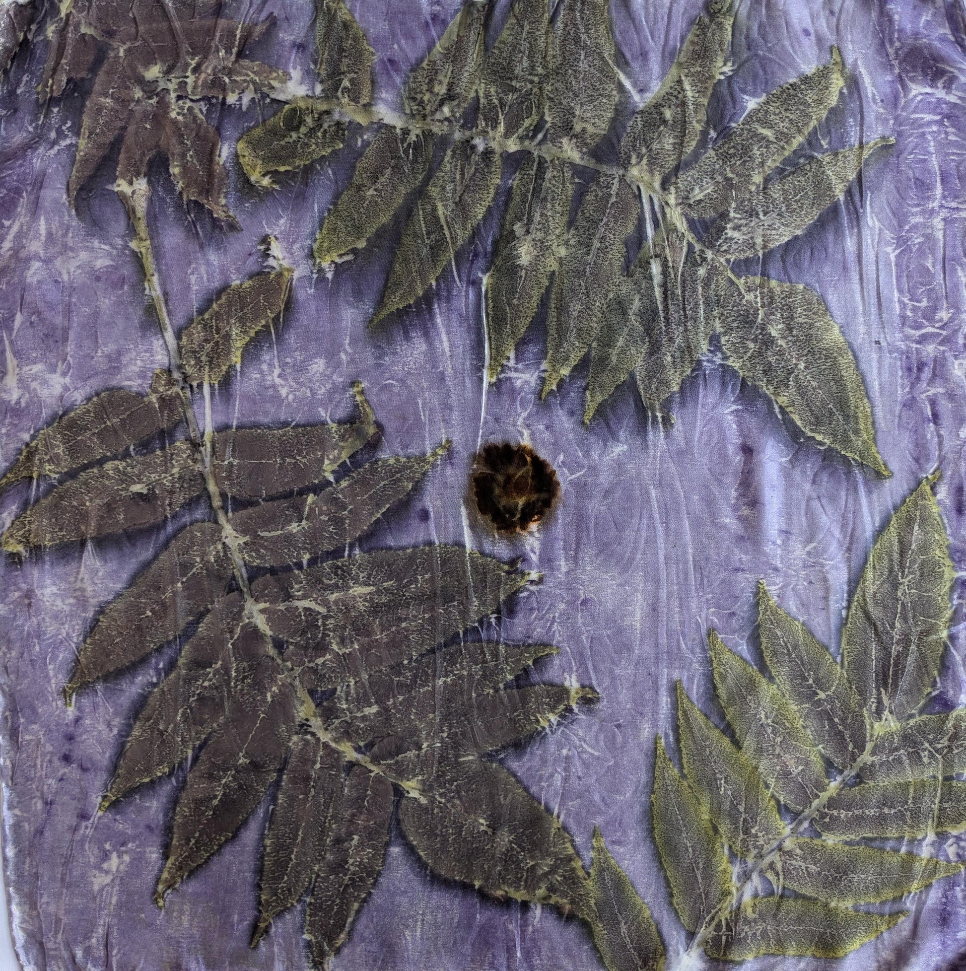 ეკო-პრინტით დამზადებული აბრეშუმის შარფი: სუმაკის ფოთლისა და სანდალოზის ხის საღებავი
