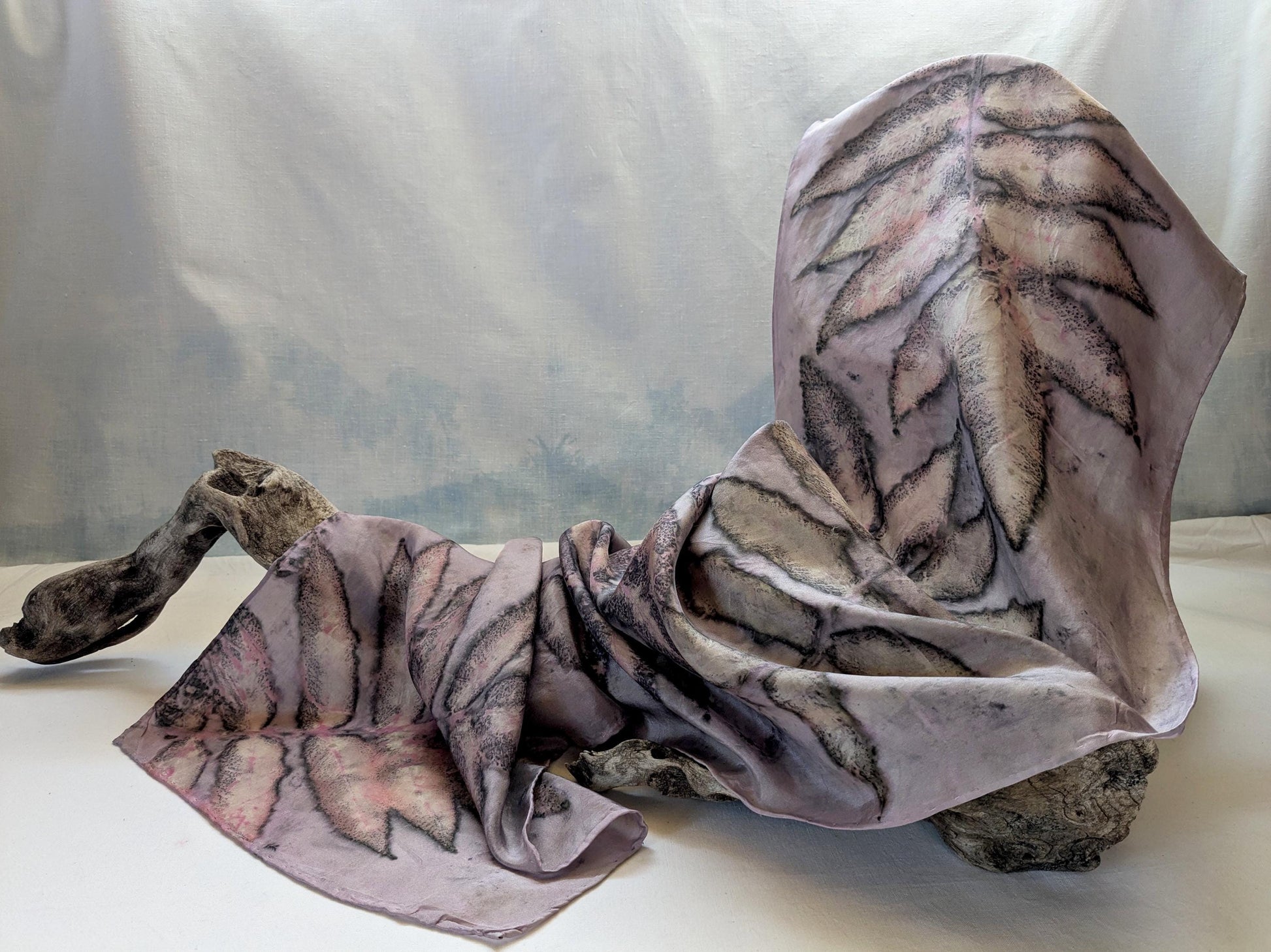 Eco-Printed Silk Scarf: Cochineal & Sumac Leaf Botanical Dye