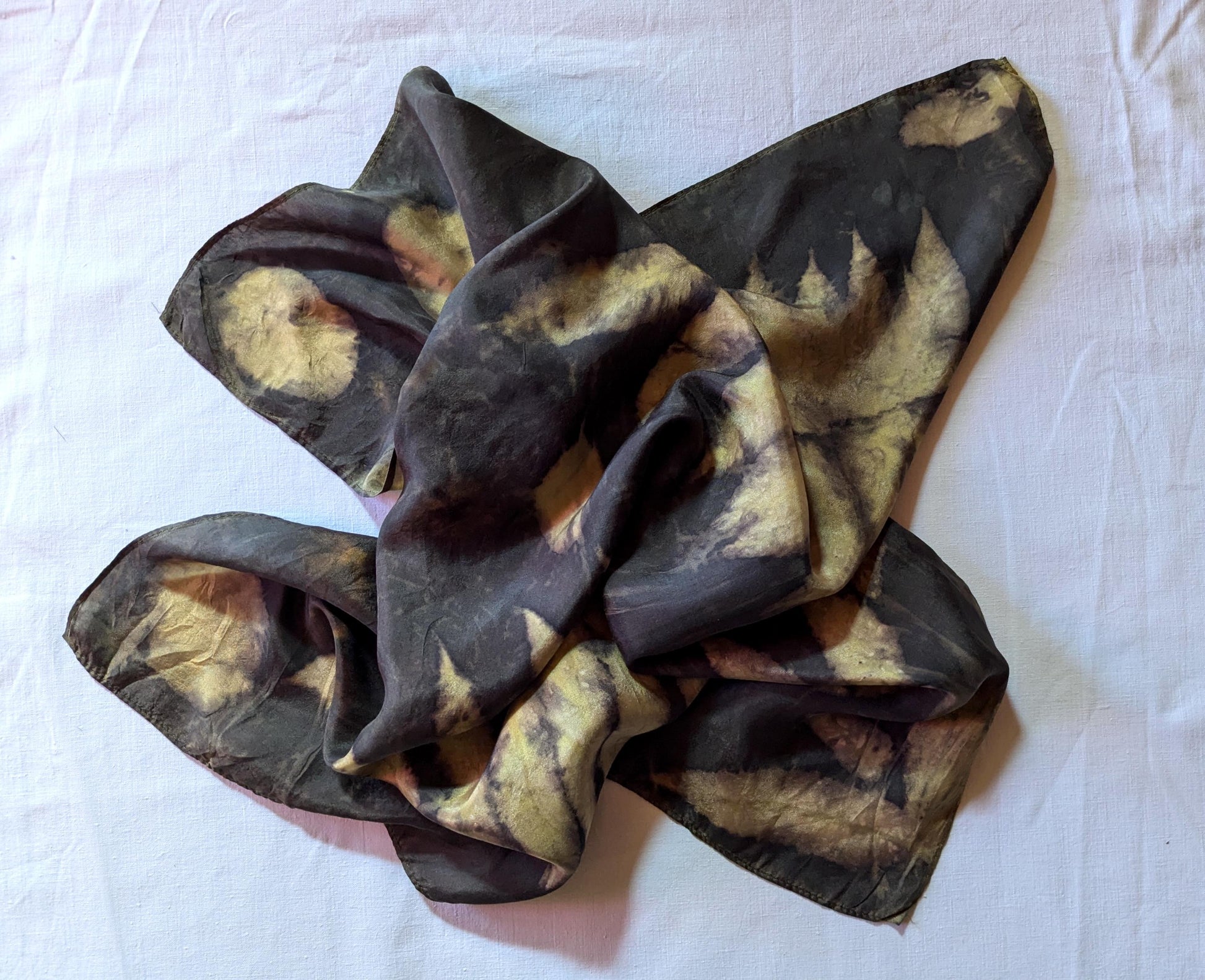 Eco Printed Silk Scarf: Hand Dyed Botanical Design, Made in Georgia
