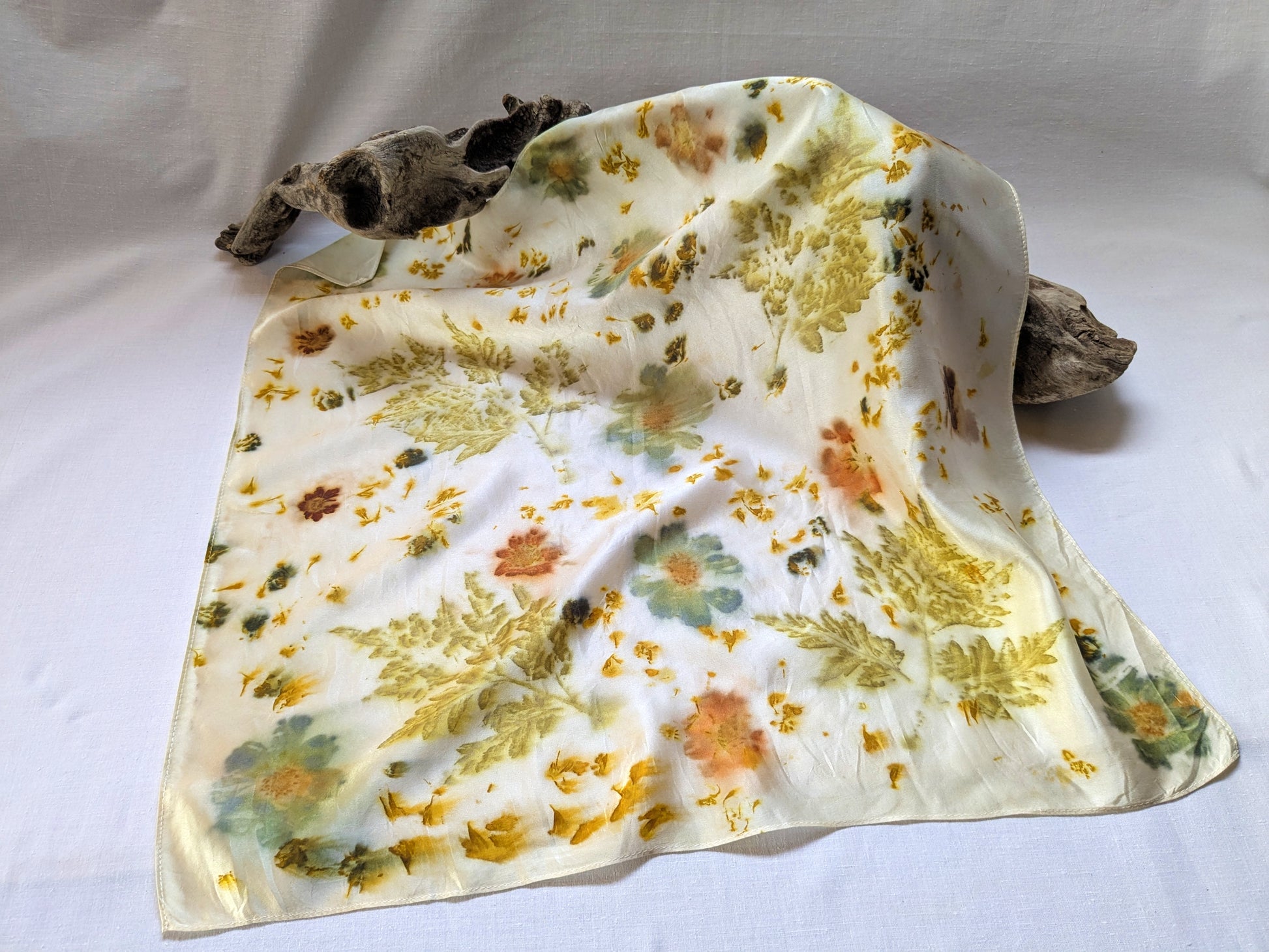 Eco printed silk satin scarf with flowers